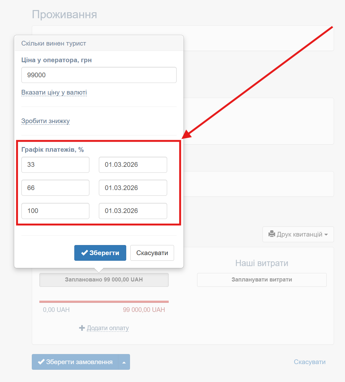 У графік платежів тепер можна вносити як % так і фактичну суму: