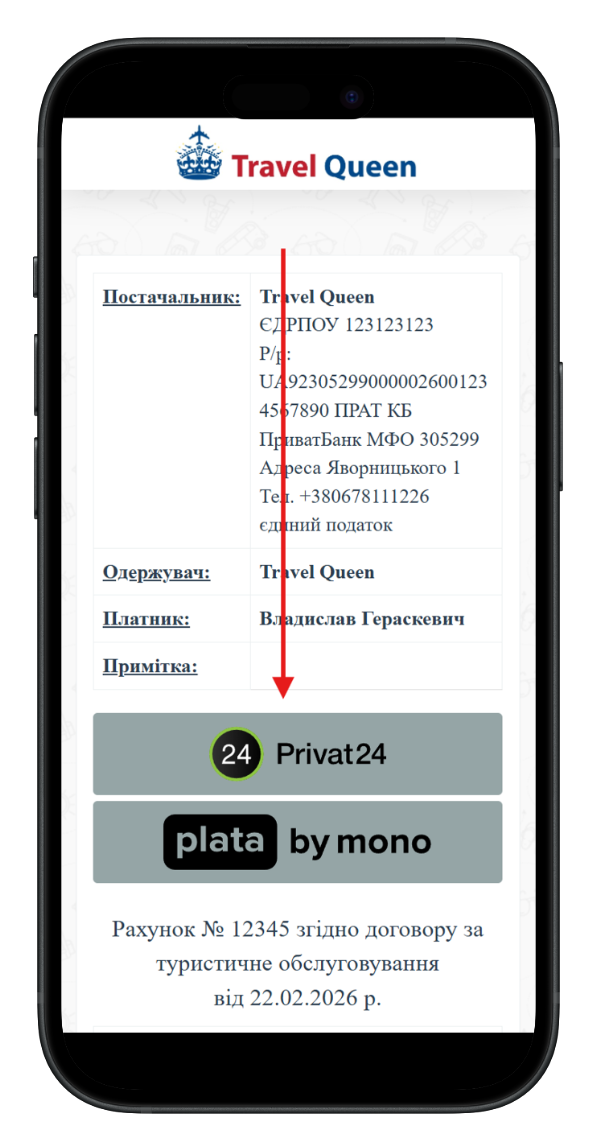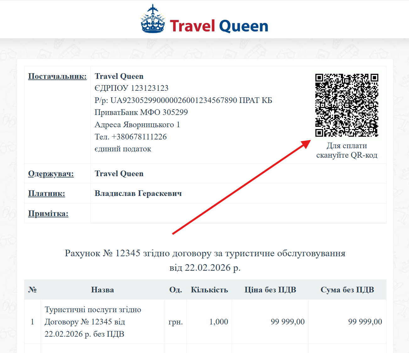Тепер у рахунку для туриста можна автоматично відображати QR для оплати: